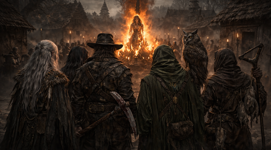 Płomienie objęły ją szybko. Nie krzyczała, nie błagała. Spojrzała tylko w tłum — i jej wzrok zatrzymał się na was. Staliście z tyłu. Jak zawsze. Potrzebni, gdy trzeba było leczyć, wróżyć, grzebać zmarłych albo łapać szczury. Niechciani, gdy pojawiał się strach. Zbyt inni, by być bezpieczni. I wtedy zrozumieliście jedno: ogień jeszcze nie skończył swojej pracy. Następni będziecie wy.